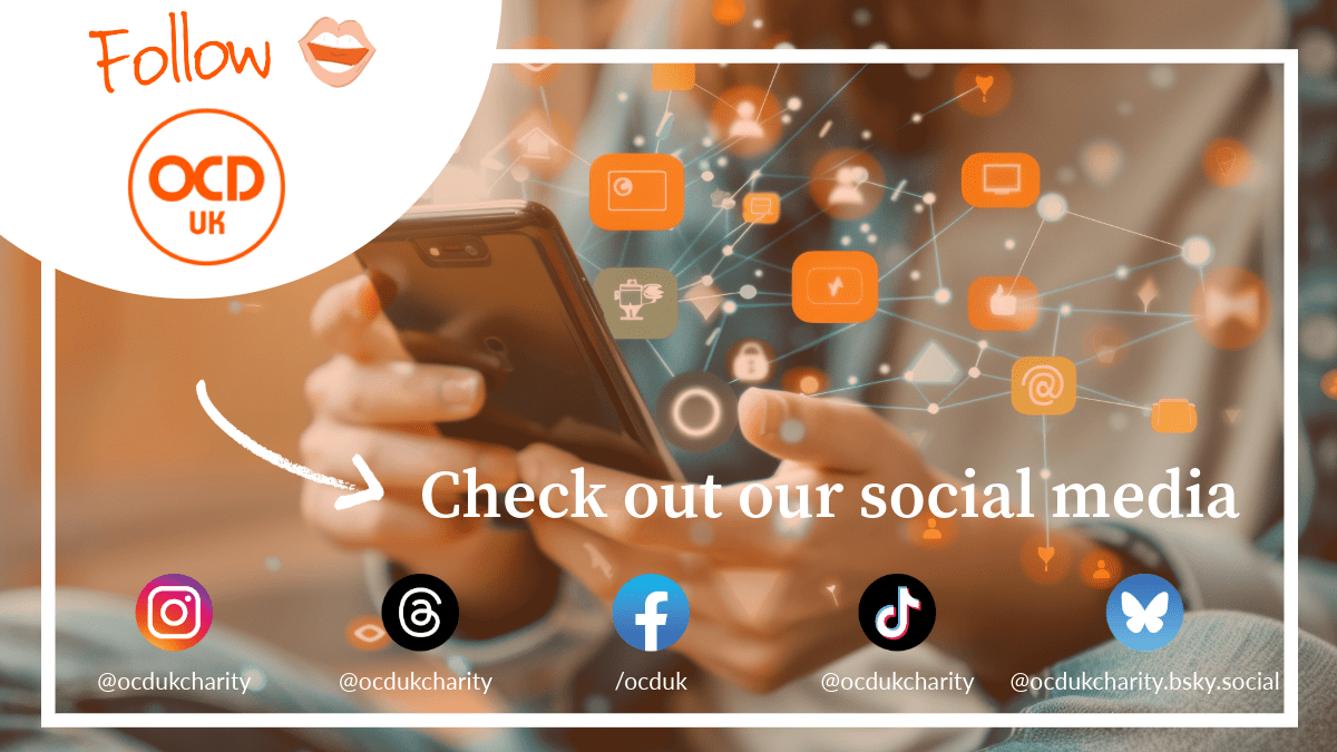 Moving forward the best way to engage with OCD-UK is through our website, and should you wish to follow our social media interaction, you can currently find us on Threads, Bluesky, Instagram, TikTok and Facebook, our account handles are shown on the image.