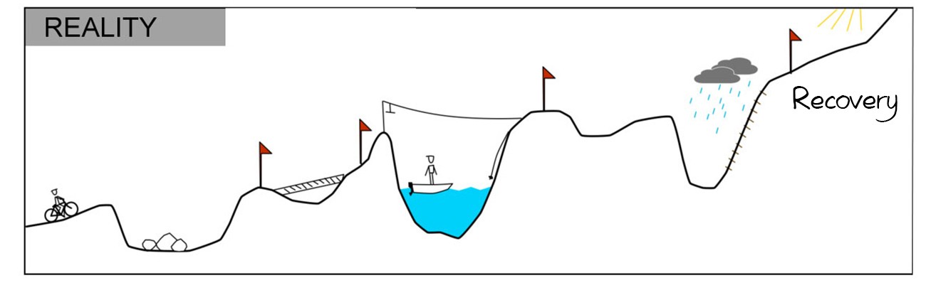 But the reality is in many cases it’s likely to be very different, because overcoming OCD requires lots of hard work, and has some challenging obstacles. On occasions we may have to go backwards to find another route over an obstacle to move forwards again.