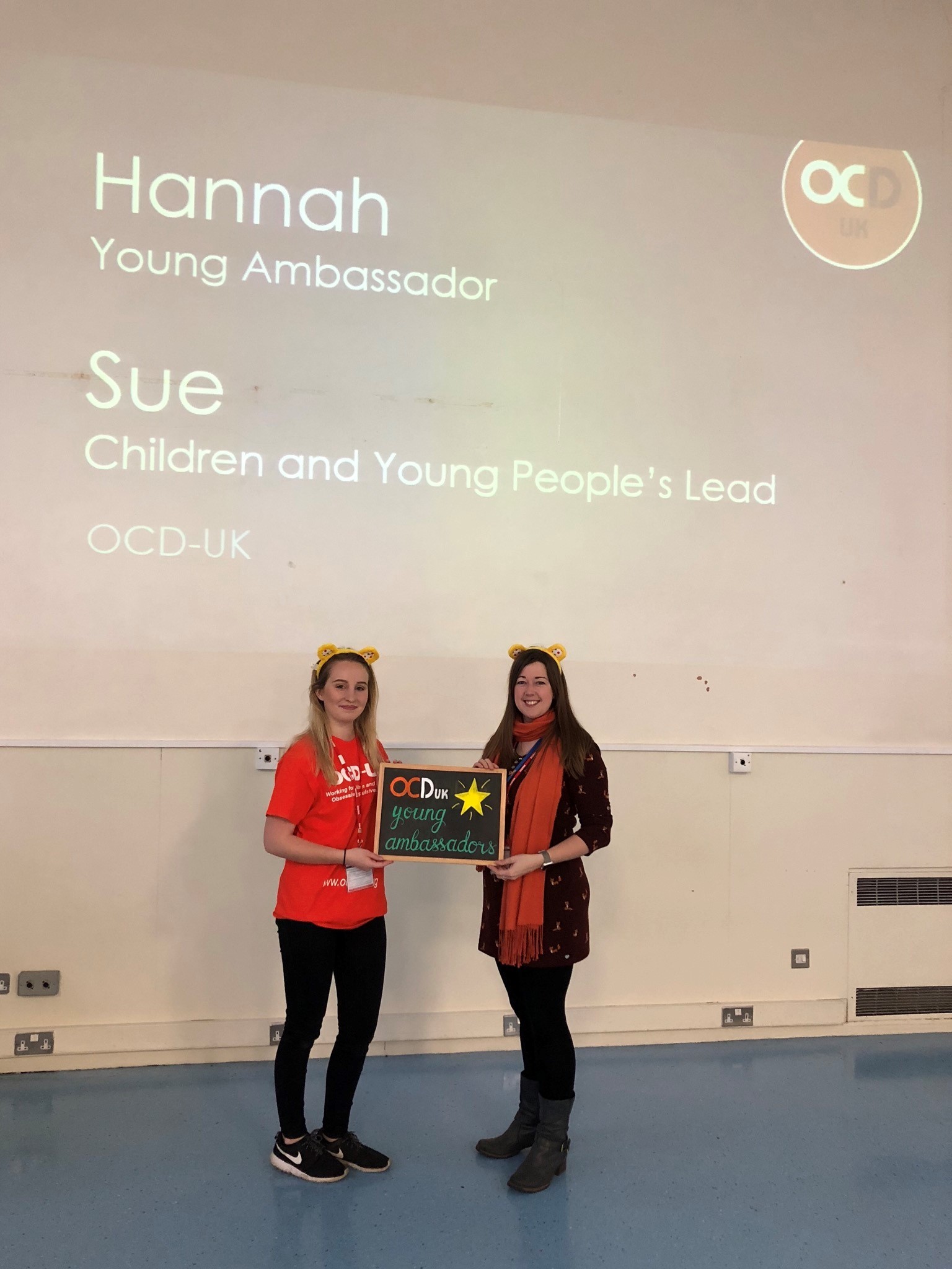 Locally, I contacted the head teacher of the high school I studied at to see if there was anything I could do. We had a meeting and decided the best way to get information across was to do an assembly. I also believed it was appropriate to display this assembly to year 9’s as this was when I had troubles, and also to deliver it in on Children in Need day in November which is very fitting as the young ambassador project is funded by BBC’s Children in Need. As I was quite nervous I asked if Sue (the OCD-UK Children and Young People’s Lead) could assist me in my talk which she kindly did and on the day we put on our Pudsey ears and shared our own experiences and explained what OCD is to 180 children. Thankfully they were all very engaged and hopefully took something away from it.