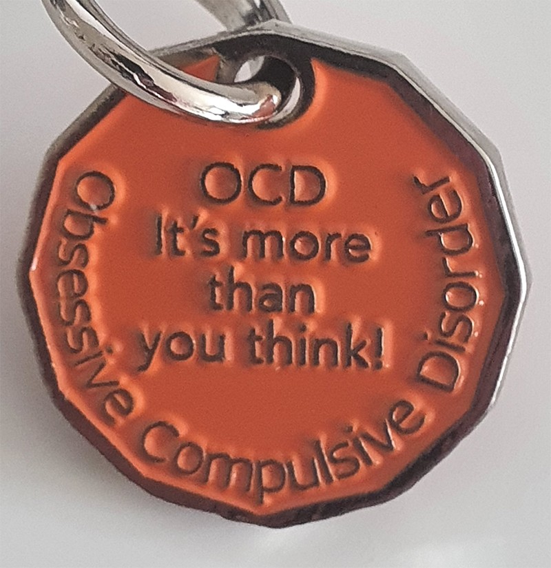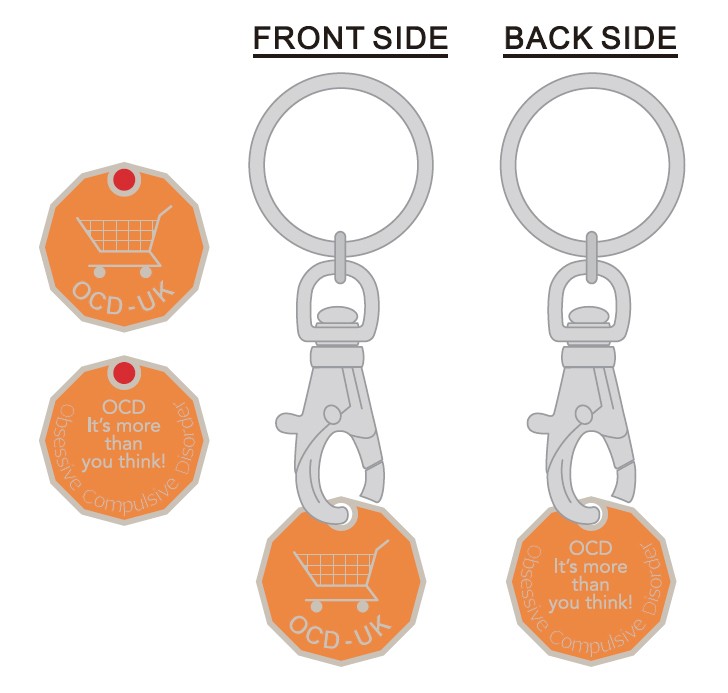 The coin tokens are printed both sides, the cover side of the token carries a shopping trolley logo with the OCD-UK name. The flip side carries the message ‘OCD It’s more than you think! Obsessive Compulsive Disorder’.